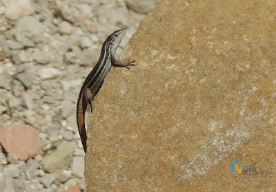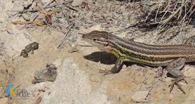 La lagartija colilarga es una de las más abundantes. En la imagen superior la estuvimos observando moverse entre los pequeños sapitos de corredor, junto al bebedero semiartificial.