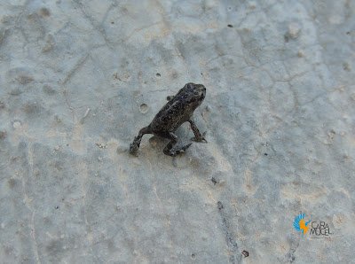 | Este pequeño sapito corredor se aventura por la superficie caliza de los alrededores de un calderón natural. |