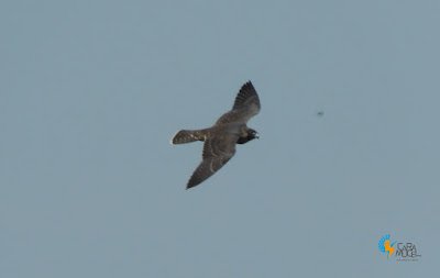 | Entre la fauna más destacable de este espacio natural se encuentran las rapaces rupícolas. En este caso, fue este joven halcón peregrino (Falco peregrinus), nacido en una de las nidadas de este año en el Parque Reginal, el que nos sobrevoló. |