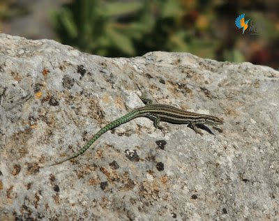 | Los reptiles son abundantes el la Sierra de la Pila. Una de las frecuentes en las zonas rocosas es la lagartija ibérica (Podarcis hispanicus). |